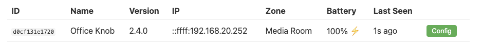 The issue is that the “Battery” indicator on the bridge UI shows 100% whenever the device is charging. So here’s the same knob plugged in and not plugged in.