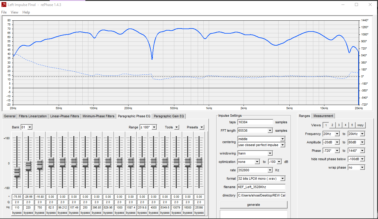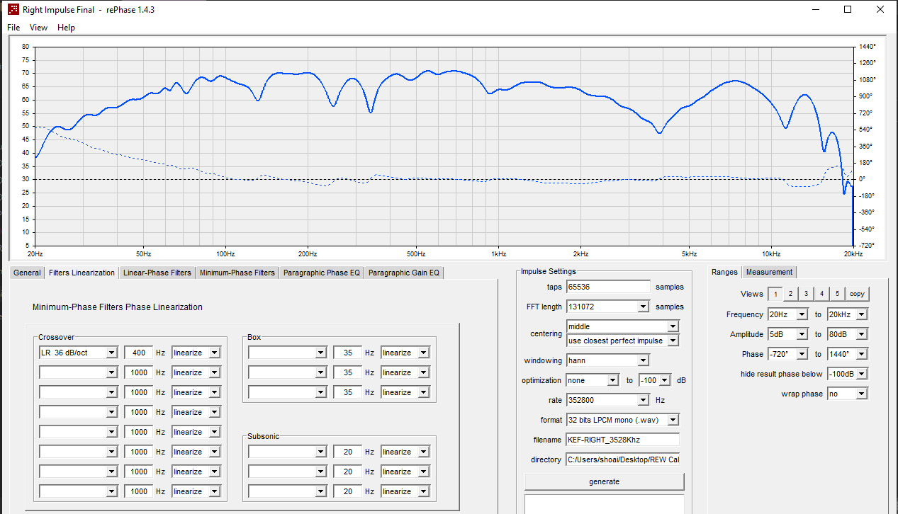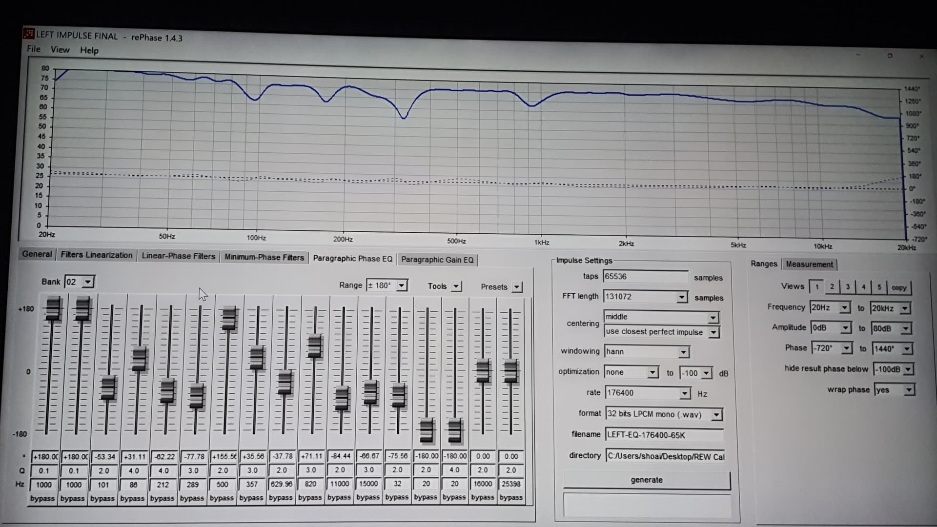 In RePhase, when I put the REW average measurements for left/right speakers, there was huge phase issues…I had to go to on an use linearization for several frequencies and then also use some paragraphic EQ to adjust some more frequency phase points to make phase linear (as best I could). Hope this doesn’t affect the sound…as I made several corrections there?