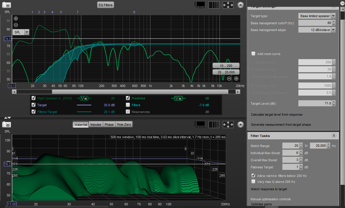I believe the speakers crossover are 400Hz and 2.9Khz…did you notice the crossover at 900Hz in your research for the KEF R7s? When I tried to do 2.9Khz…the phase graph just went way below the target line all the way in higher frequencies. Should I linearize both 400Hz and 2.9Khz anyways and then use Paragraphic EQ to correct whatever dips those linearizations create around higher KHzs?