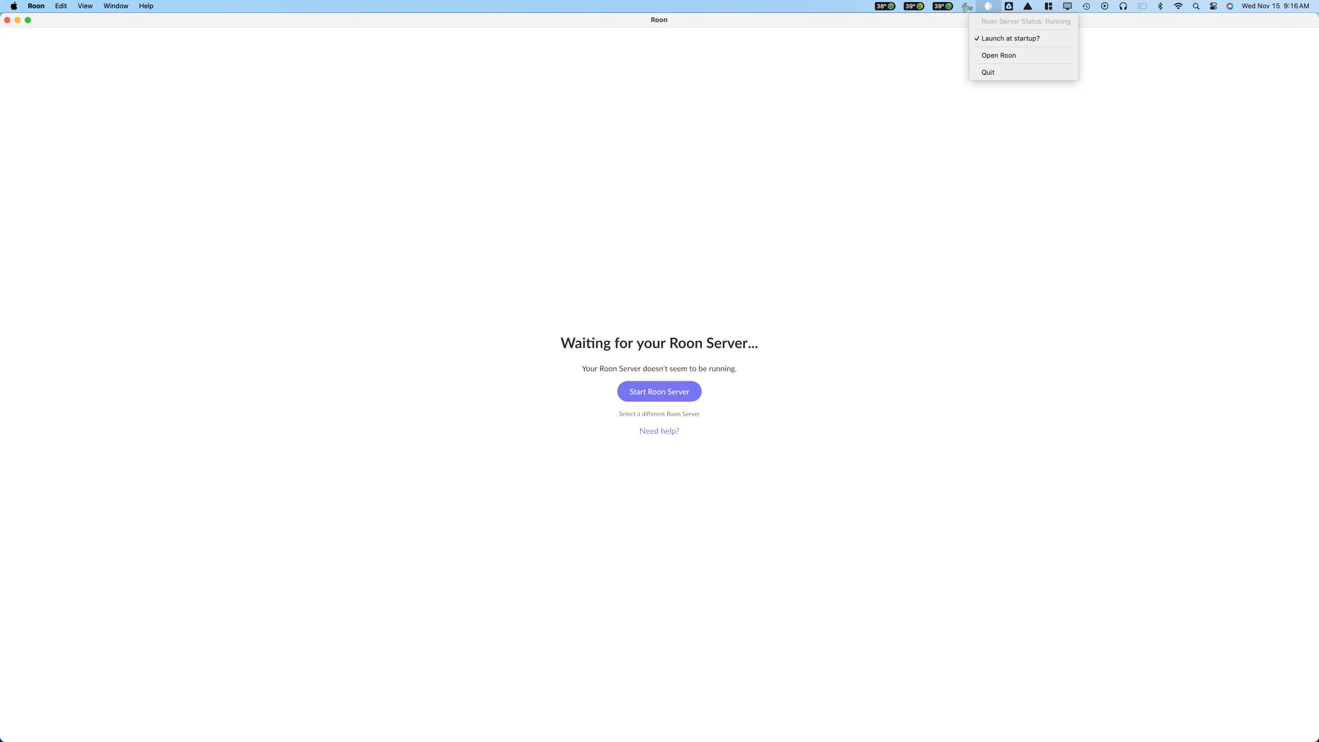 Same issue. Just “Roon Server Doesn’t Appear to be Running”. Click start Roon Server, screen goes to the Roon icon for about 30 seconds and then back to "Waiting for your Roon Server…