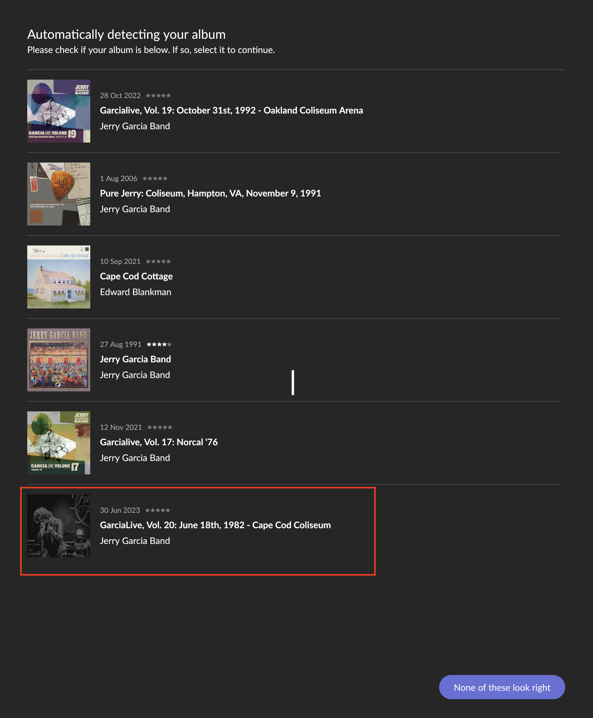 I know the grey one is unidentified. That is the point. I’m trying to identify an album that I just ripped from CD.
