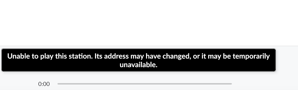 Until recently (at most 2 months ago) I had no problem playing live radio stations that I’ve added to Roon. Mostly Radio Paradise but also BBC, Catalunya Radio and a couple of others. Now all fail to play with this error message: "Playback was interrupted because a track failed to load.