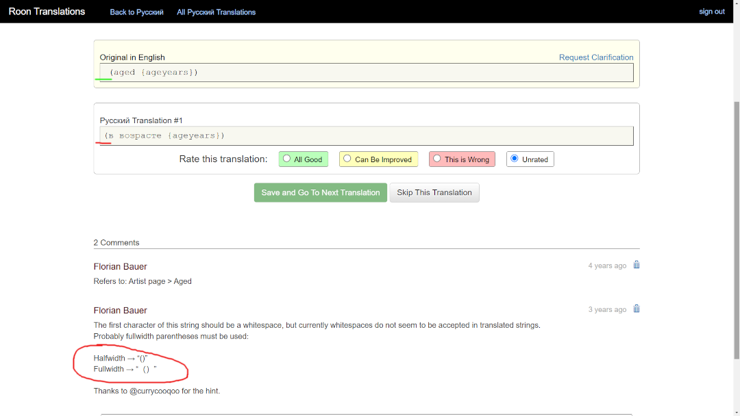 Unfortunally I noticed that almost every aspect of the translation of Roon into Russian requires correction.