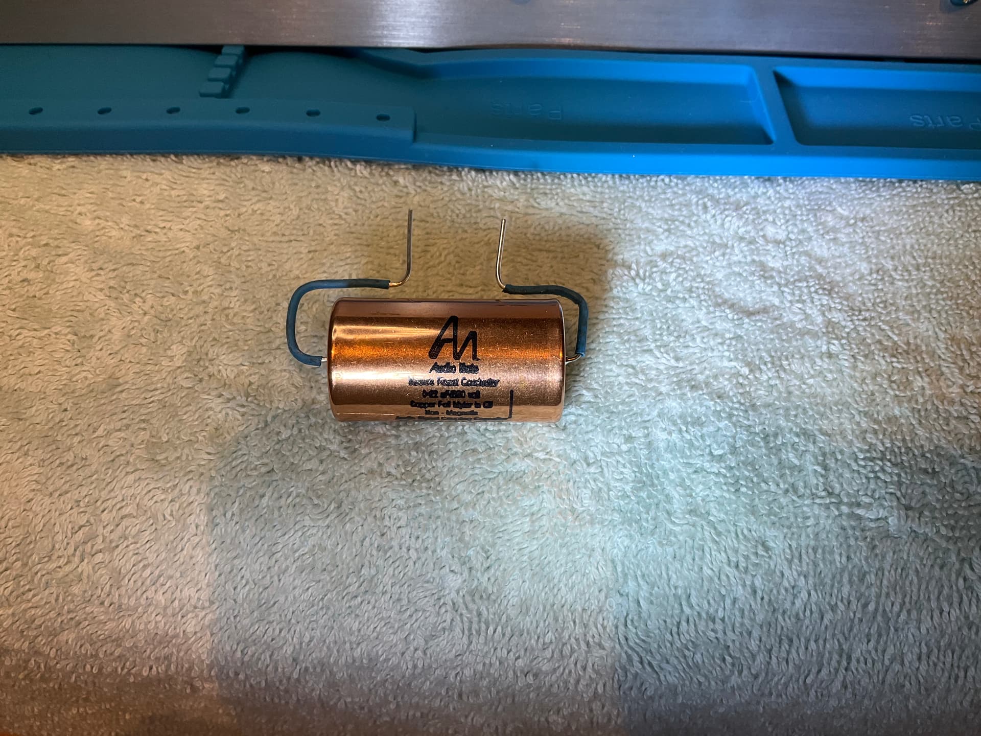 I learned about these amps reading this diyAudio thread and saw that the OP had substituted an Audio Note copper foil/mylar capacitor for the supplied WIMA type as coupling capacitor to good effect.