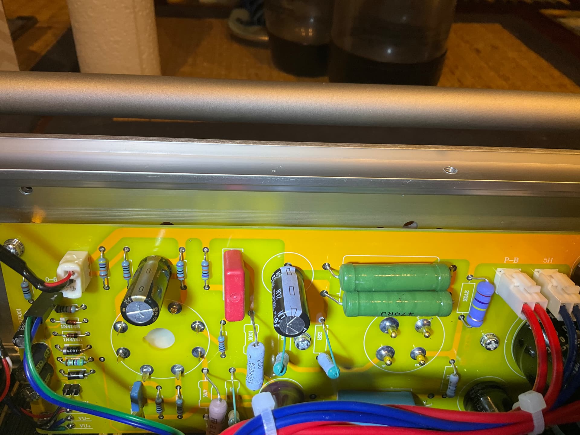 With the modifications complete I put in the tubes (Psvane Cossor 300B, Psvane UK series 6SN7, Shanguang 574P rectifiers) and hooked it all up in the guest bedroom.