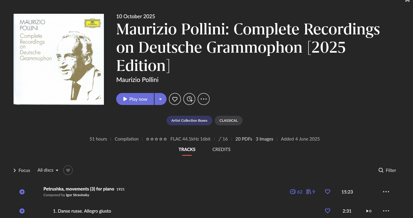 The box has been re-released in 2025 with the additional recordings made between the original and Pollini’s death last year. The new release is 62 CD