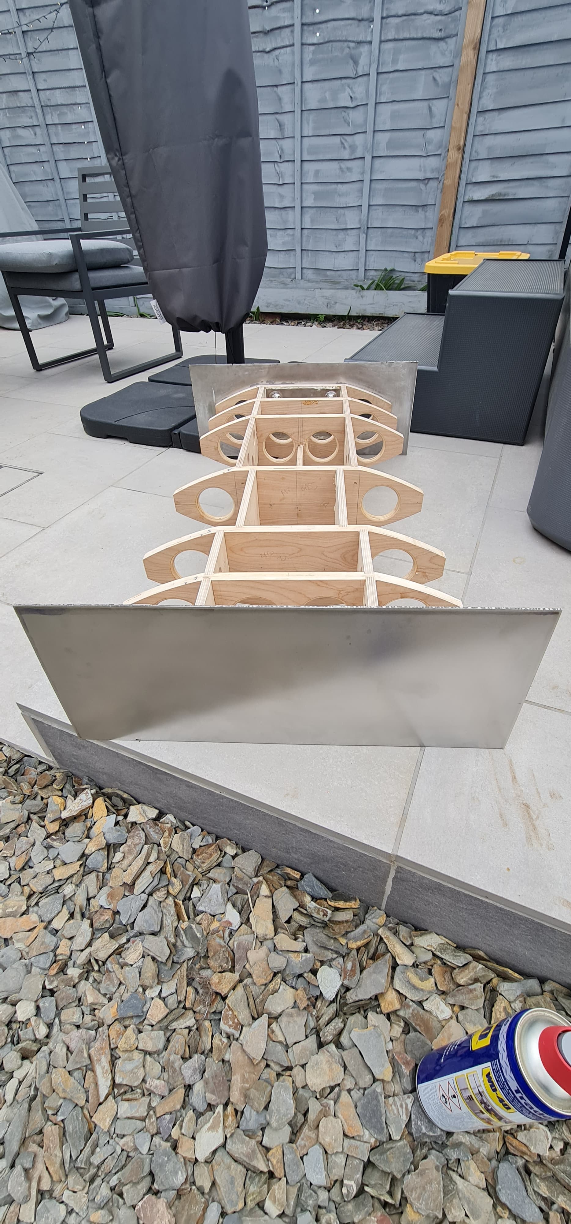 A version of Troels Gravesen’s Poor Man’s Strad utilising curved cabinetry, constrained layer damping, a 3k 2/2 carbon fibre wrap, 304 stainless top and bottom panels and a 304 stainless plinth.