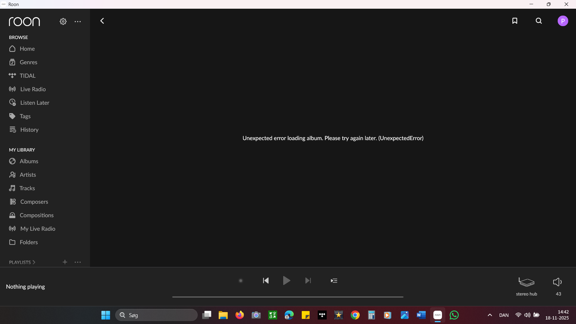 Roon app displays 'Tidal login failed' error message as of 12:36 Australian Eastern Standard time.