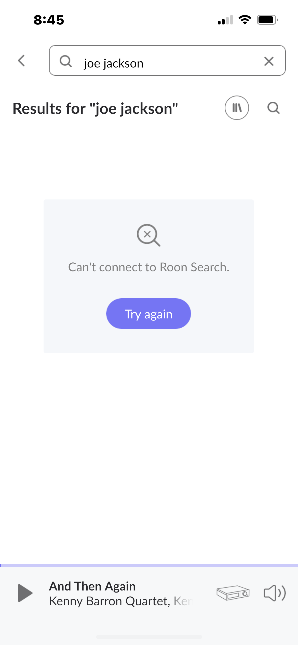 Error message âcannot reach Roon search â
