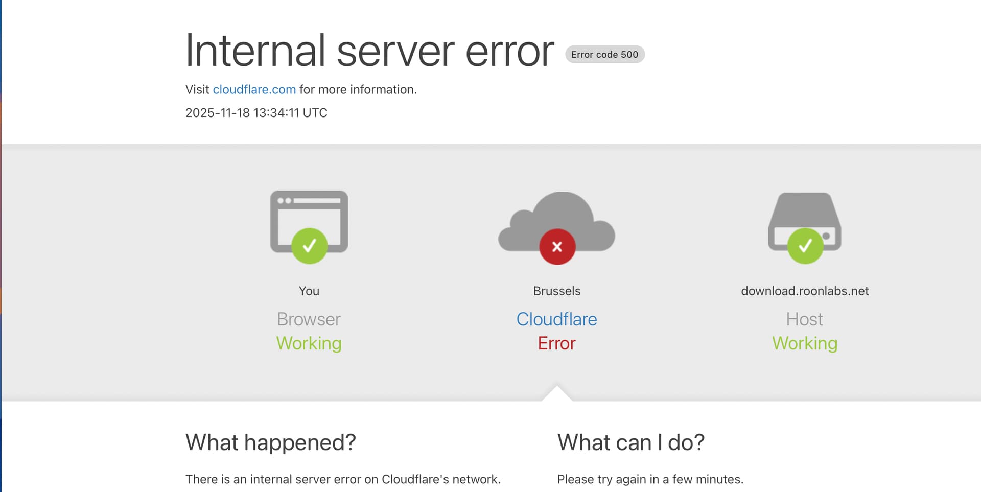 Please wait until cloudflare has resolved its current issue, then try again.