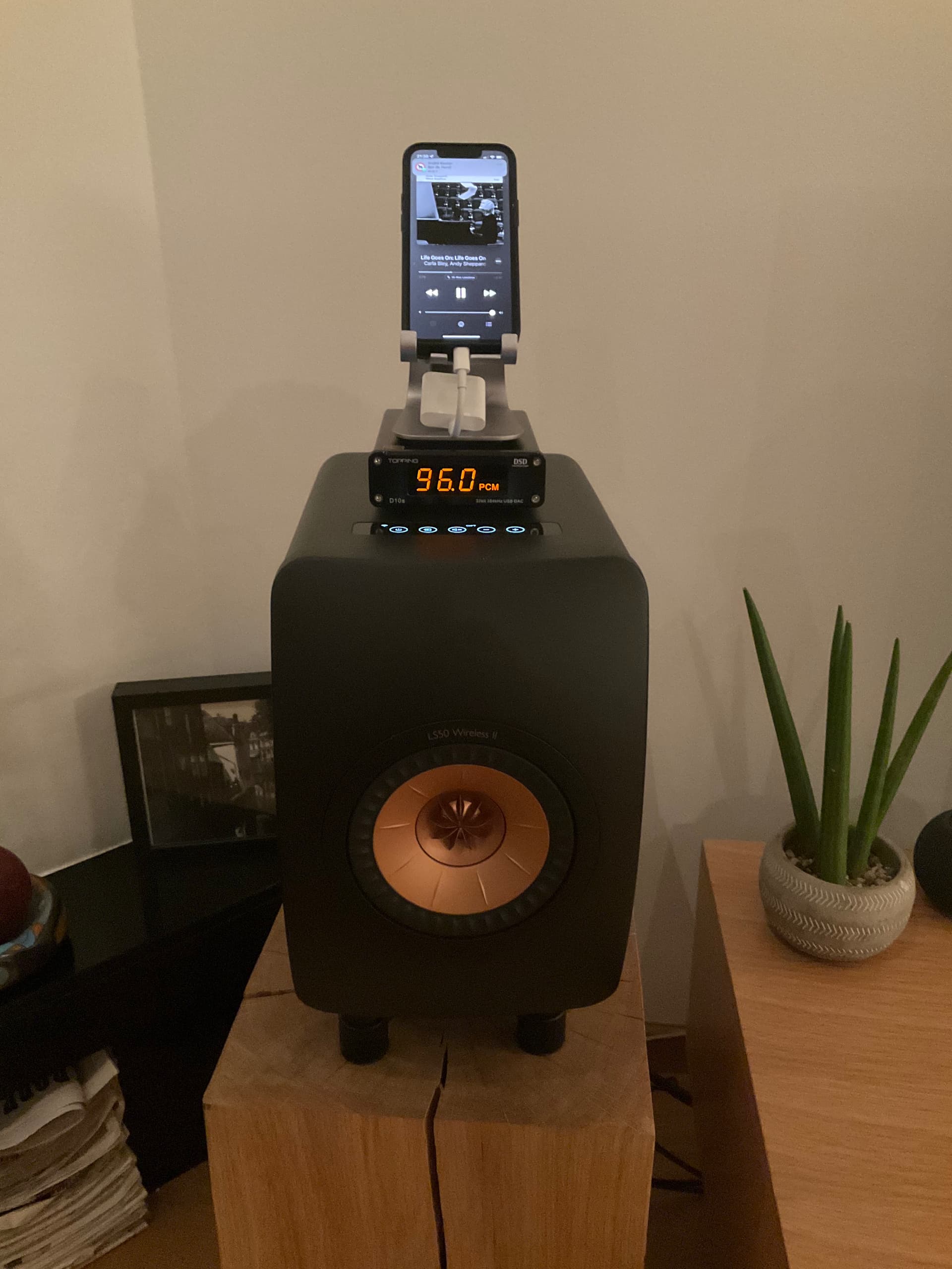 Nice KEFS, but since they’re active, why pump the output of your excellent Topping DAC into the aux of a set of active speakers with digital crossover? – i.e. it’s going to be bunging the analogue line level output which came out of your Topping through an internal ADC inside the speaker, doing the DSP crossover and then running that through its internal DACs (one per driver?) before amping it.