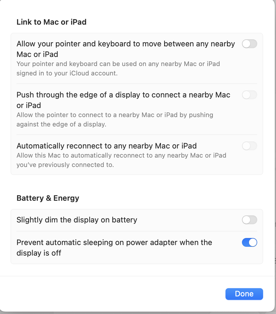 My Mac is set to not put the hard dive to sleep, yet after a short amount of time after no activity, Roon is not available unless I move my mouse around. Am I missing something in my settings?