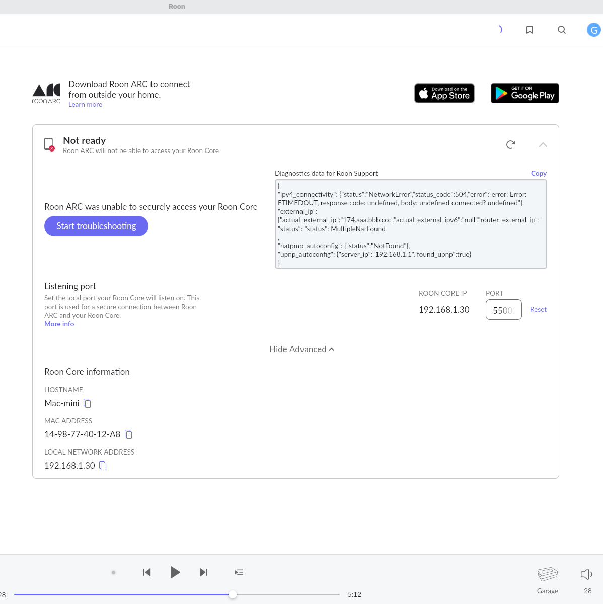 Roon Arc has stopped working. I have opened up network paths per instruction, but no luck. As a test, I had a friend bring his laptop to my house, log onto my network and confirm that his Roon Arc works, so it is not my network…