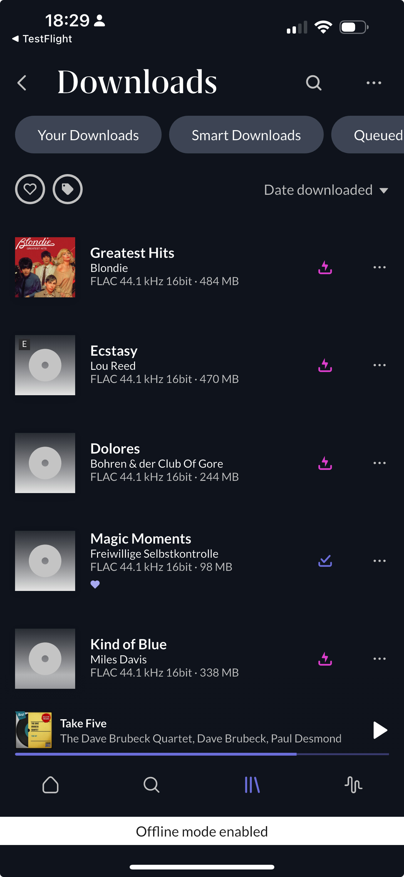 However, the images are still low-res and small on the album page but switch to good quality in Now Playing, even while offline.