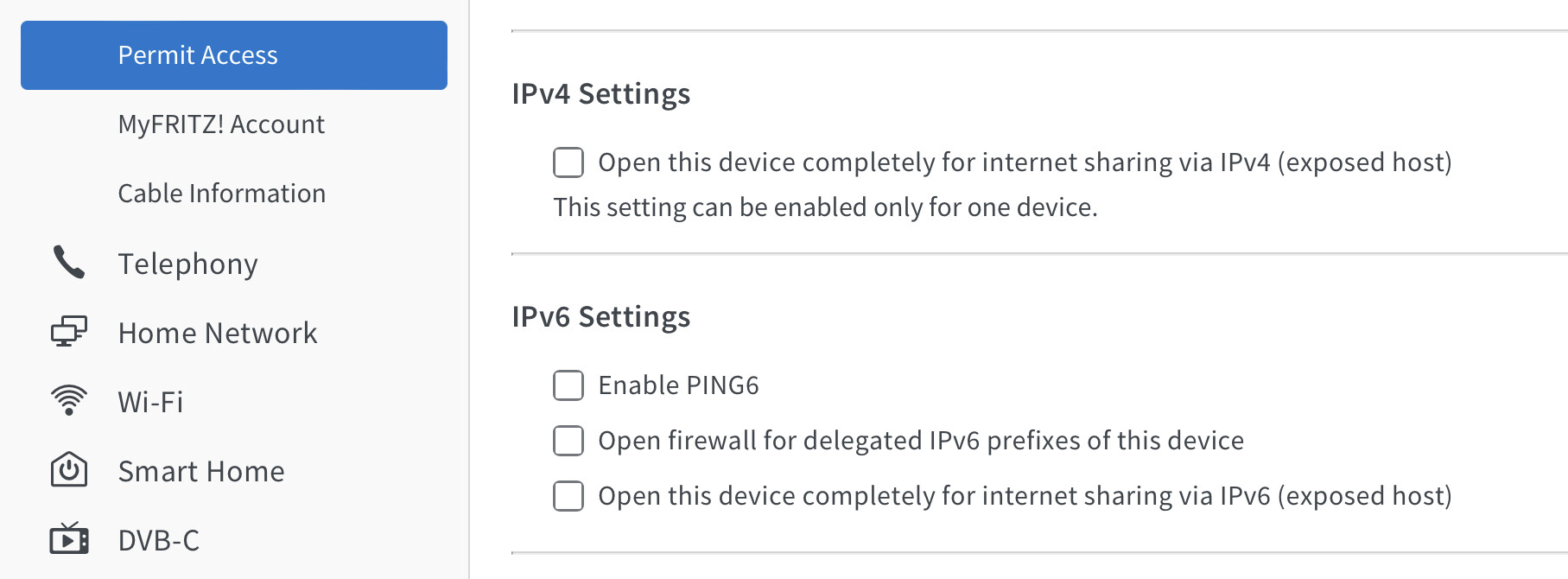 Once youāve simplified the network for troubleshooting, please post any relevant screenshots of your Fritz!Box web administration like those above.