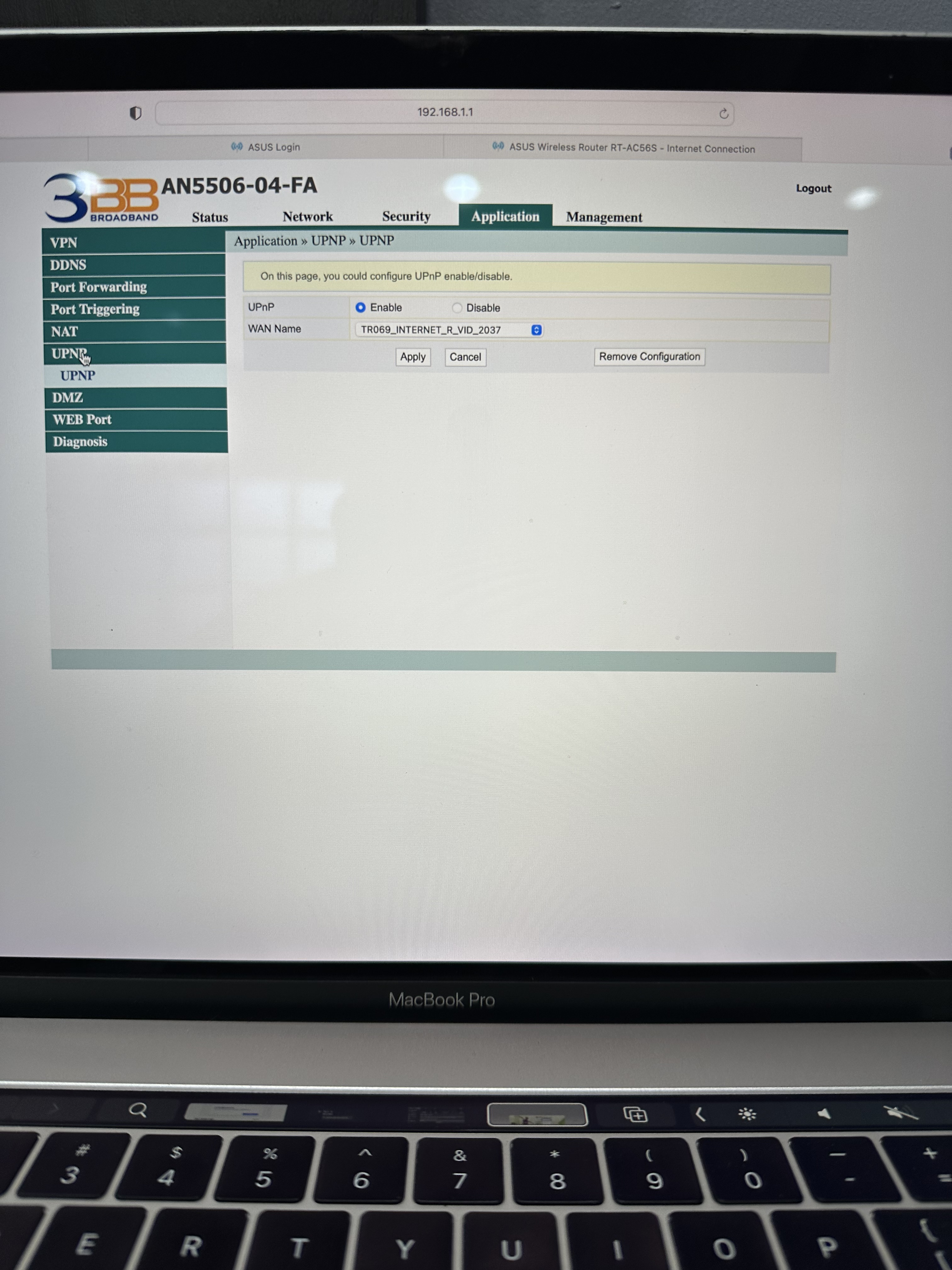 Ethernet connection from 3BB router to Asus (office router)