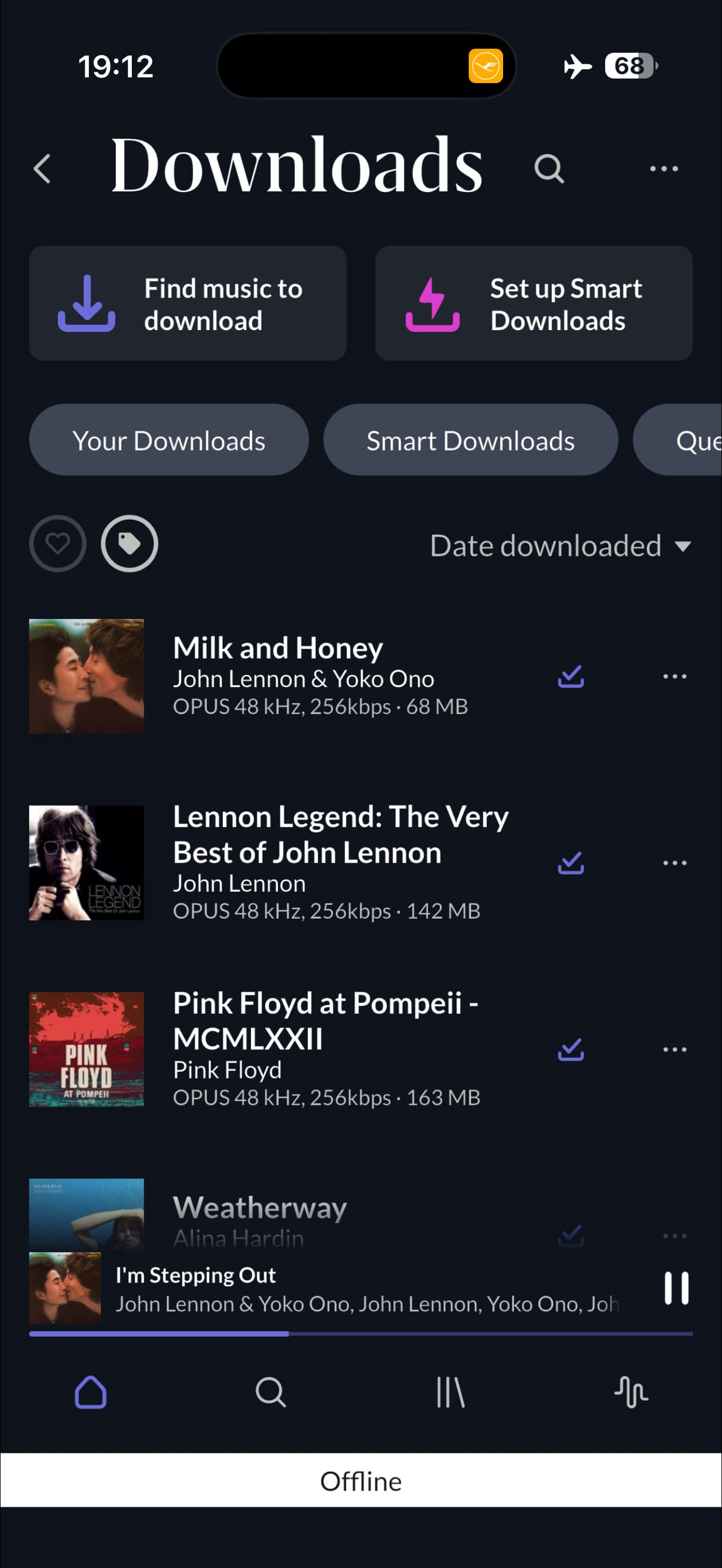 So, sat on a plane with ARC build 379, and no internet… album artwork is still there! Nice. Except, now the albums won’t play. In fact none of my downloads play, except the 2 albums quickly downloaded 5 mins before boarding. Does this mean the right to access downloads expires? And if so, why? This is a new behavior and totally unacceptable. When ARC was able to connect to my server again, the DOWNLOADED albums play.