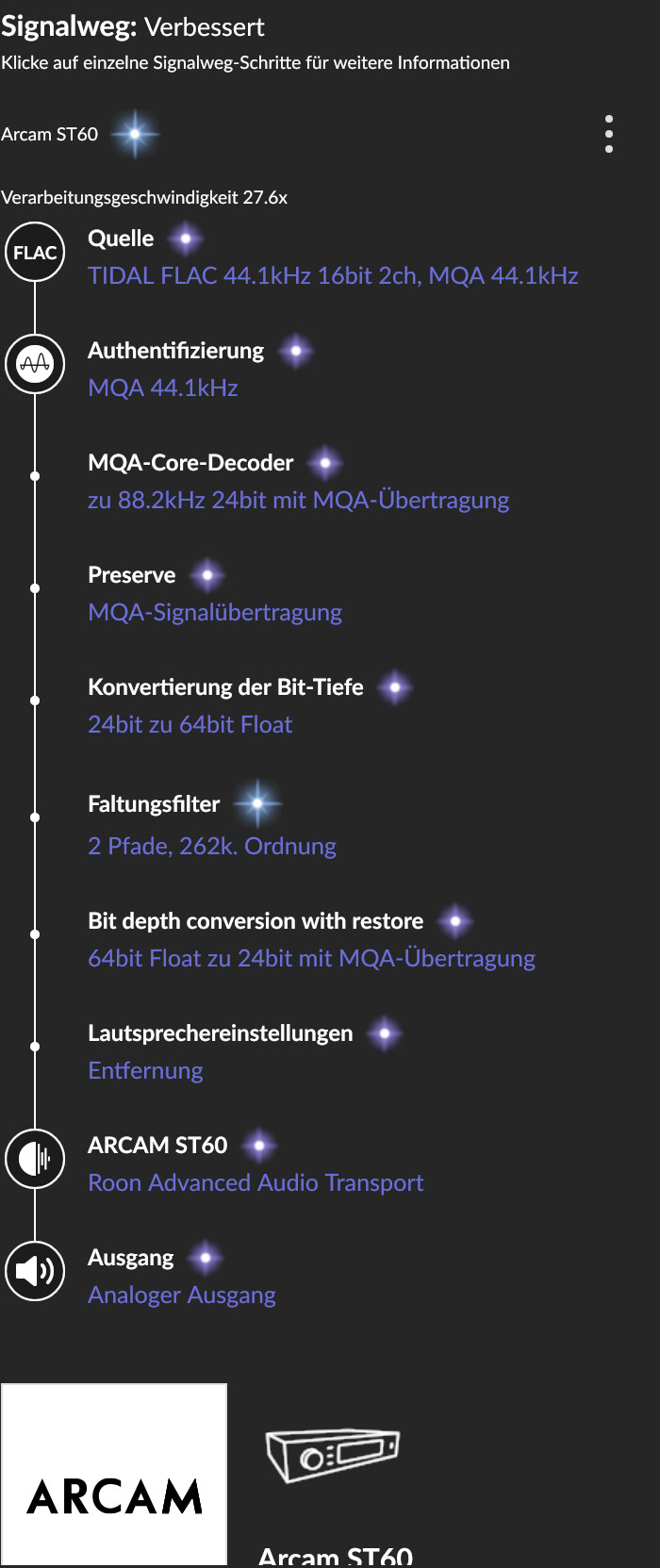 I donāt see the MQA Rendering in the Arcam show up though in his example with DSP, it should still show up should it not?