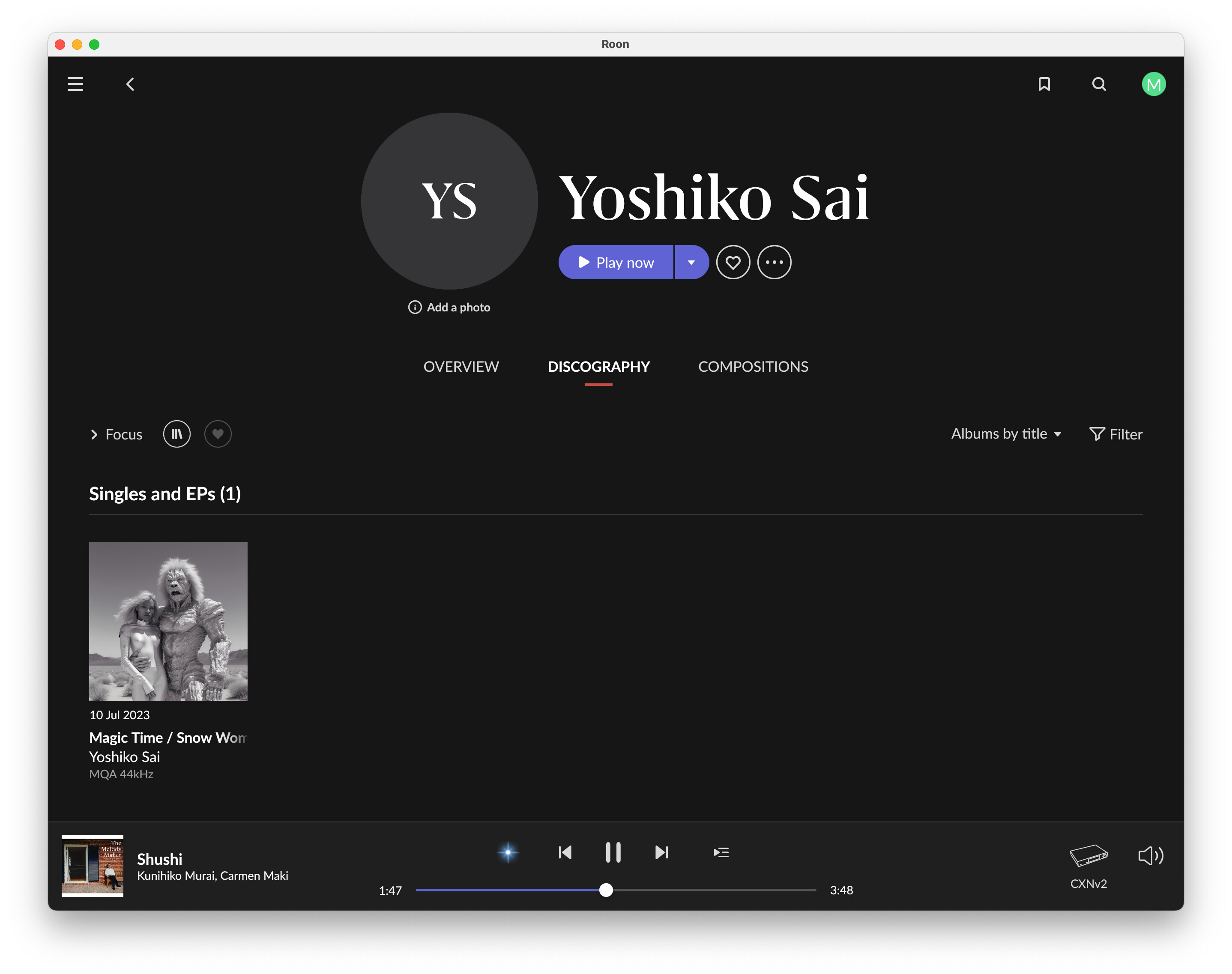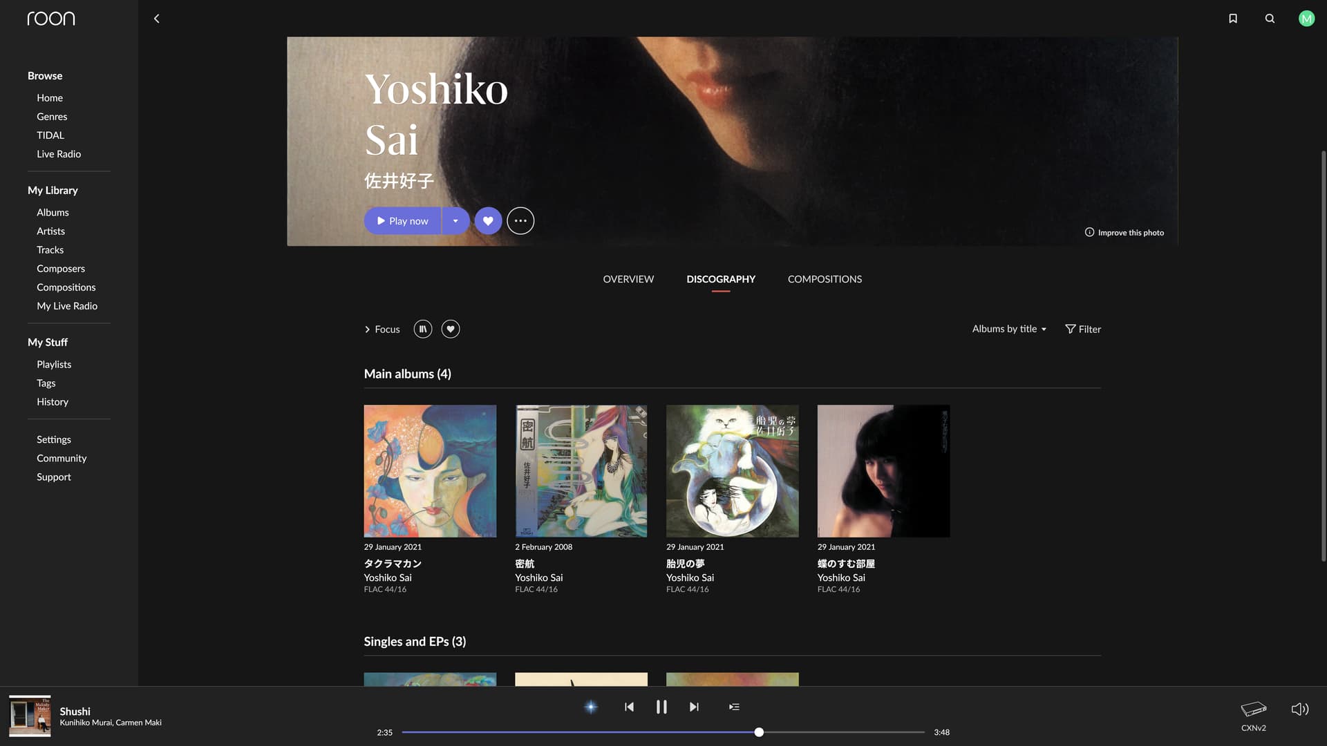 the album is a Live Recording that I purchased recently from Ototoy.jp but it doesn’t appear to be in the Roon database. but it appears in tidal with the artist names tagged in Japanese.