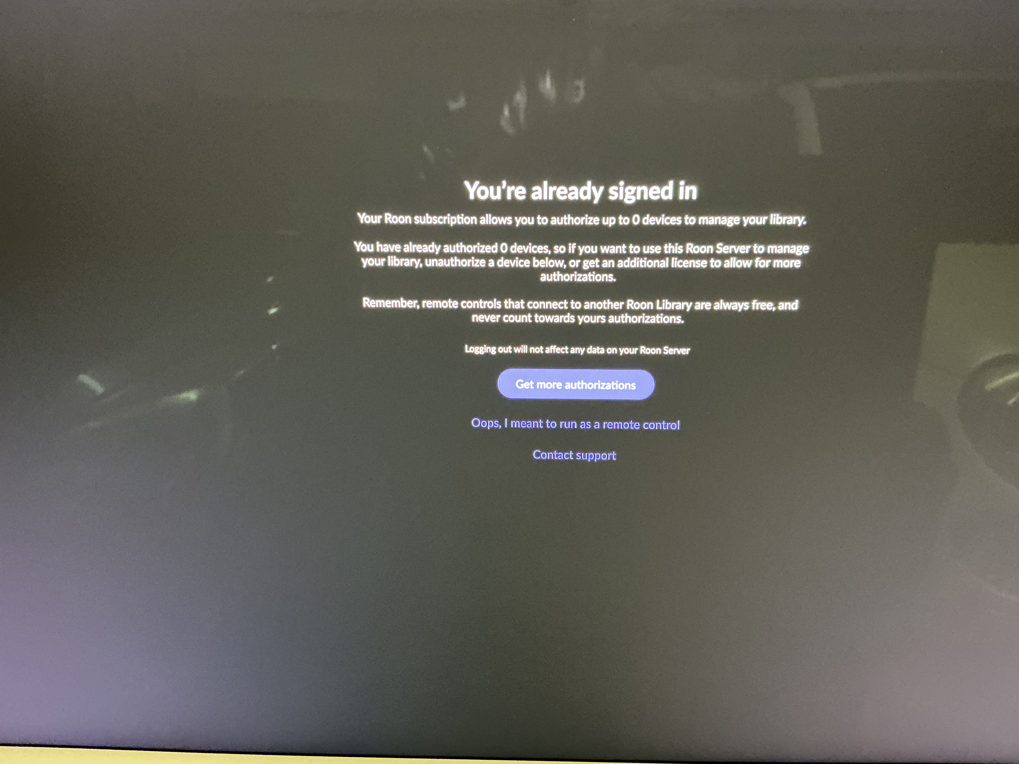 And I believe we see the bottom edge of the screen in @keyse1‘s photo, where the Unauthorize button should normally be. The button missing makes sense, I guess, if Roon thinks that there are „0“ subscriptions.
