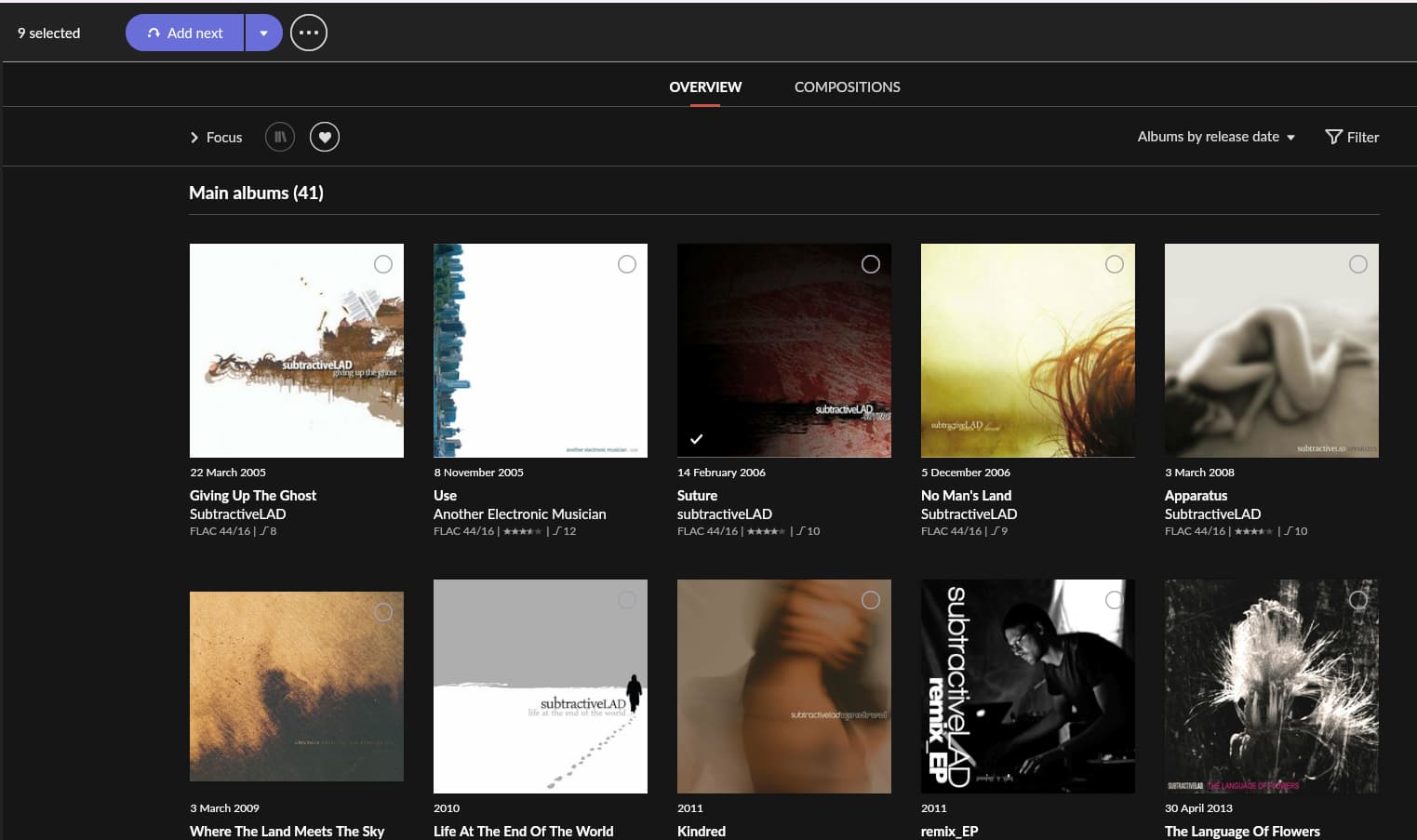 selected the first 9 albums, but the select visual is gone.