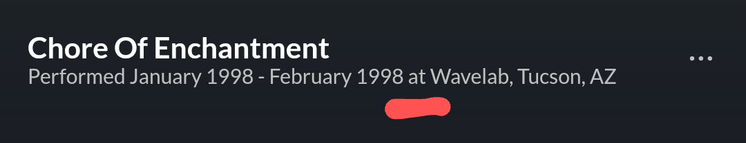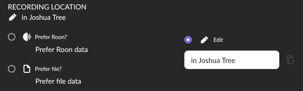 Note that in both cases there is no preposition like “at” before the the location, it’s just “Performed location”. If location is a recording studio, this might be OK grammar, but it always felt a bit weird to me after I noticed.