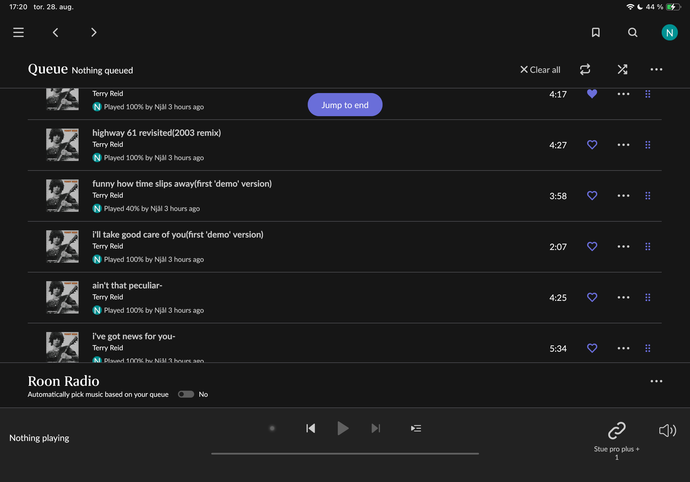 And then re-launched Roon server.
