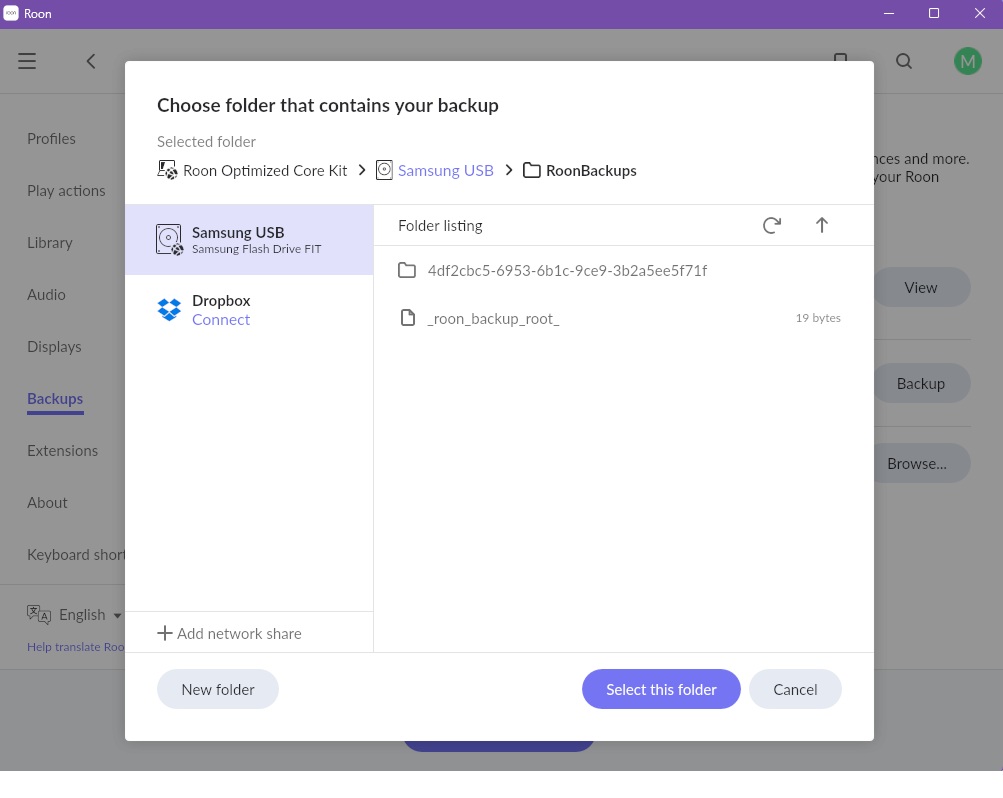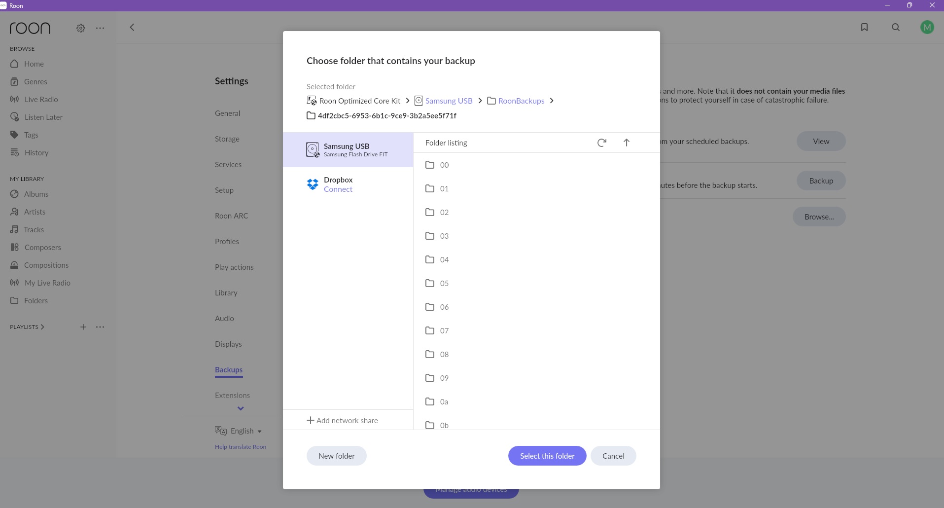 It doesn’t matter - if I select the RoonBackups folder I get the same result.
