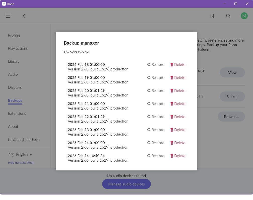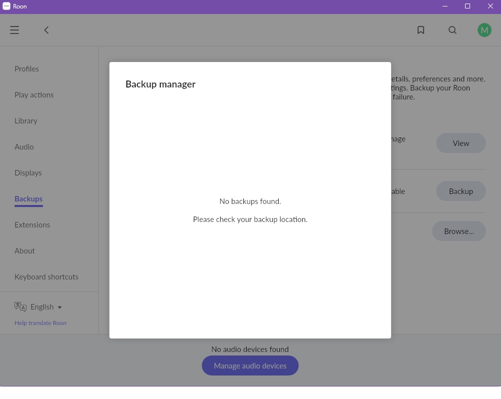 Last night I did a third backup using a different flash drive (which also would not load on the new NUC). Interestingly, for some unknown reason when I looked at my computer this morning Roon showed the attached message. This is what I think I need in order to load my database onto the new NUC. However, when I disconnect the old NUC and reconnected the new one, Roon automatically logged onto my account, and once again failed to load the backup. Is there any way to sign out of Roon? Or is there a location on my PC that stores these credentials so that I can delete them? I believe my problem will be solved if I can get to the screen that shows the “Restore a backup” in lieu of the Login and Sign up choices.