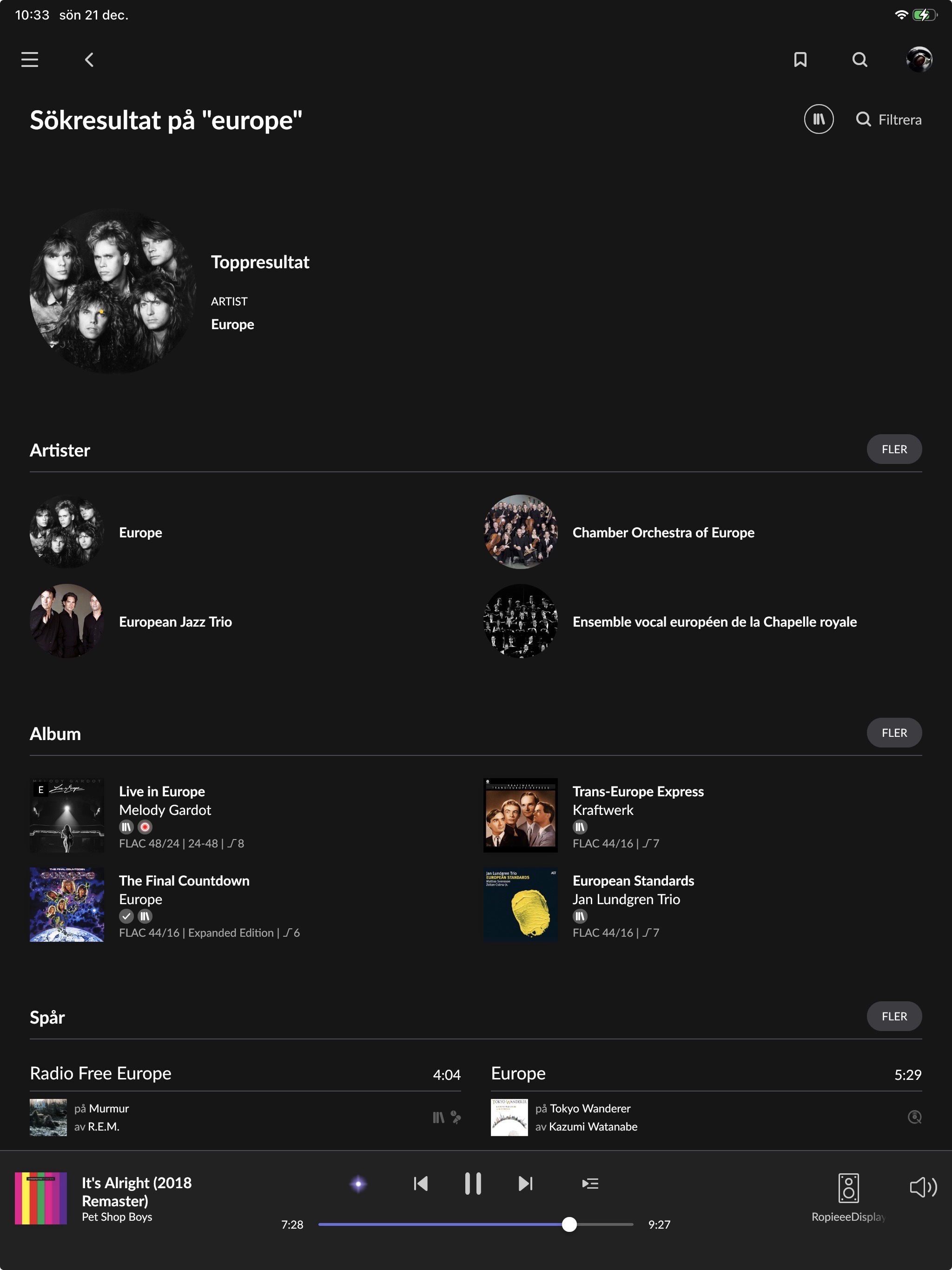 Same thing happens when looking for a track by Swedish artist Carola, pretty well known in northern Europe with plenty of record sales behind her.. Still the artist Name match suggested by Roon is her finnish namesake.