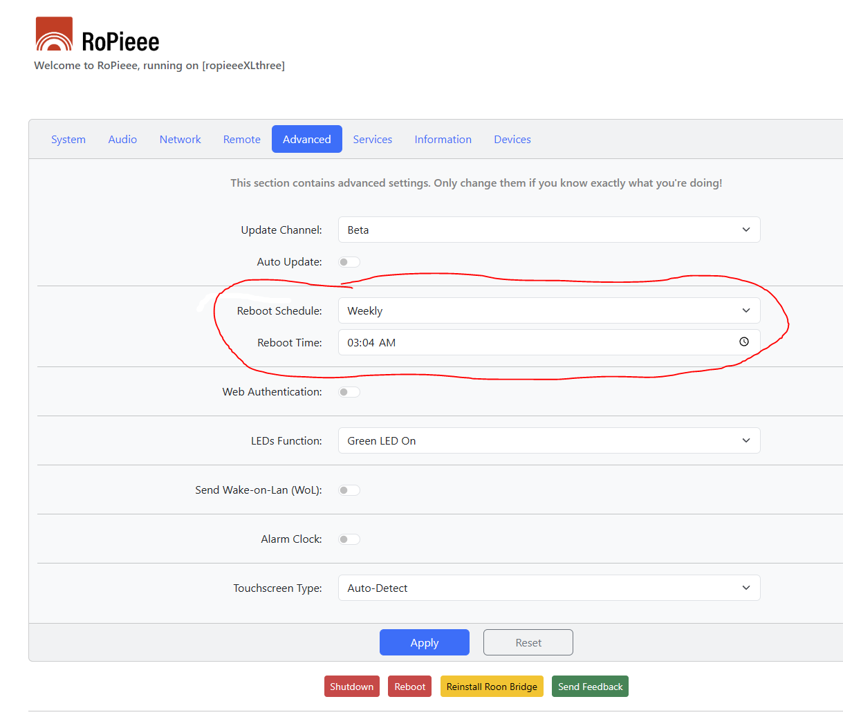For me it is not a big drama, as that RPI is mainly used as clock on my desk. I use another RoPieee as display for my ROON-endpoint, and an additional one as ROON-endpoint. And those two latest are never restarting (but are also only powered on when I am working at my desk at home, so max. 14 hours continuously after which they are again turned off).
