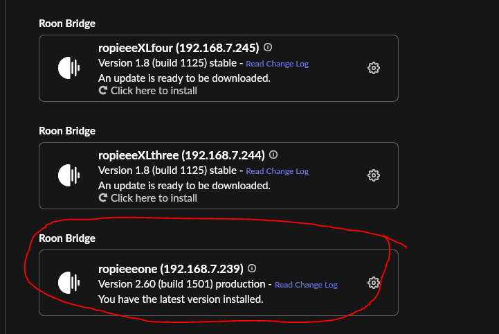 I have tried reinstalling the roon bridge from the webui, several times, but this has not helped.