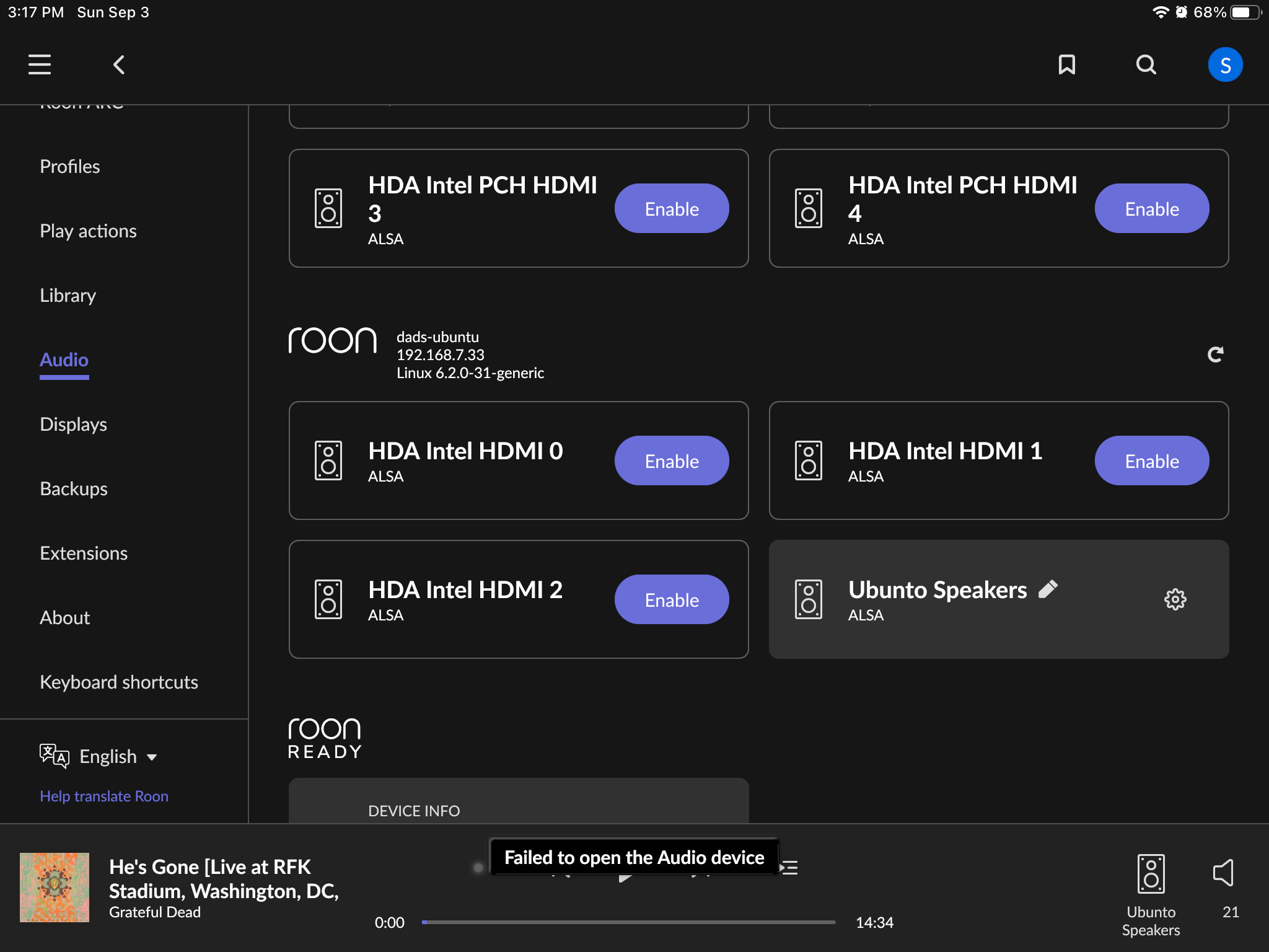 Iām having the strangest problem with RoonBridge in Ubuntu 22.04.3.