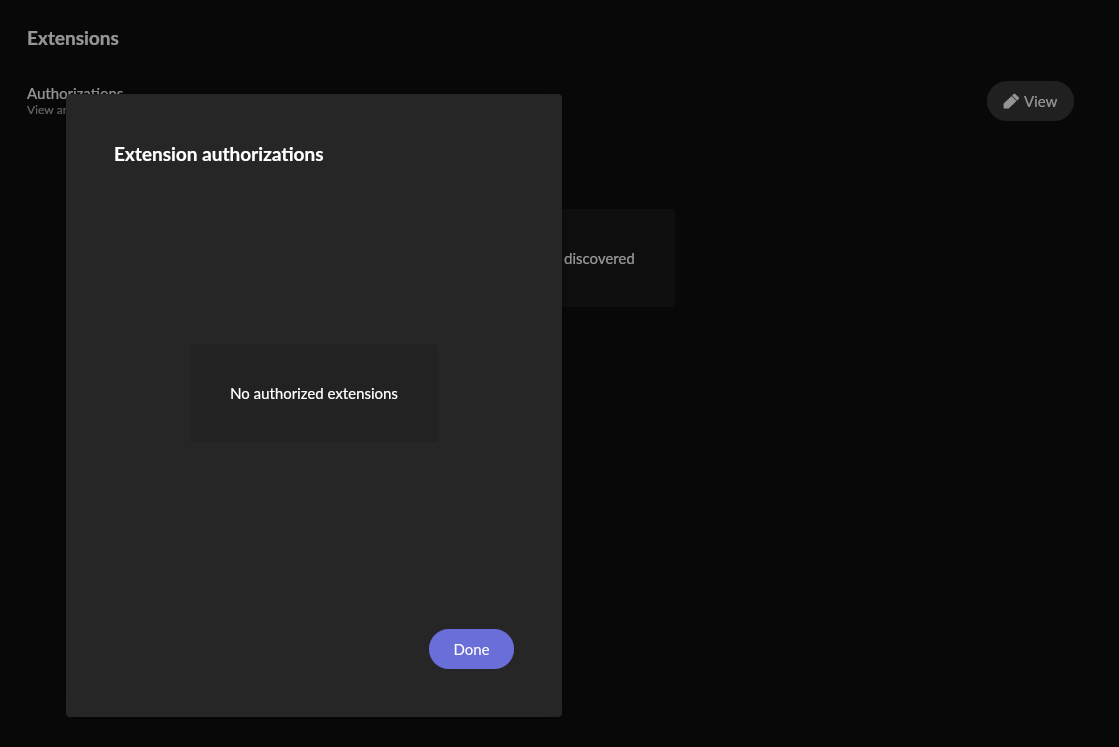 There is an extension installed that I want to try to disable. I know that disabling it won’t really hurt day to day usage since for some reason it became disabled for a while and I reenabled it again after discovering so. But the settings menu only allows me to remove authorization for it and I’m worried it will completely disappear if I remove authorization, so I haven’t tried it.