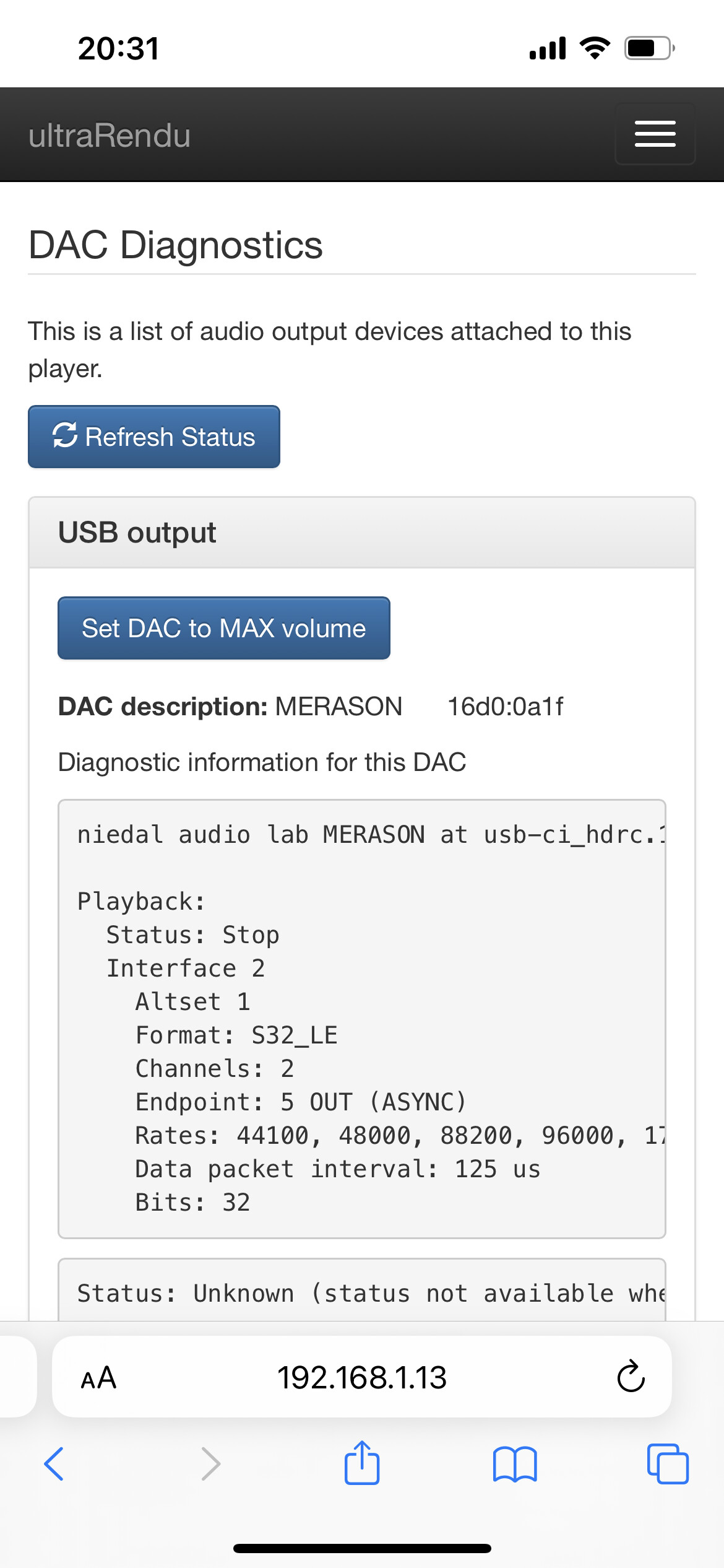 I have an UltraRendu (player only) running the same SonicOrbiter s/w and here is what it will show when the DAC is connected