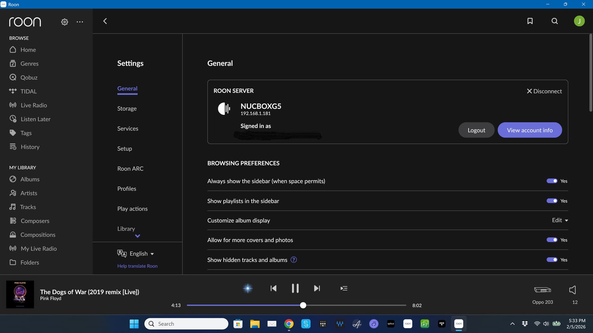 Just to summarize, if you want to play 5.1 using Roon, use an HDMI cable from your Roon server to your Oppo 205 auxiliary input (assuming you’re using the main HDMI input for something else). Then, you should be able to play 5.1 to your attached surround sound system.