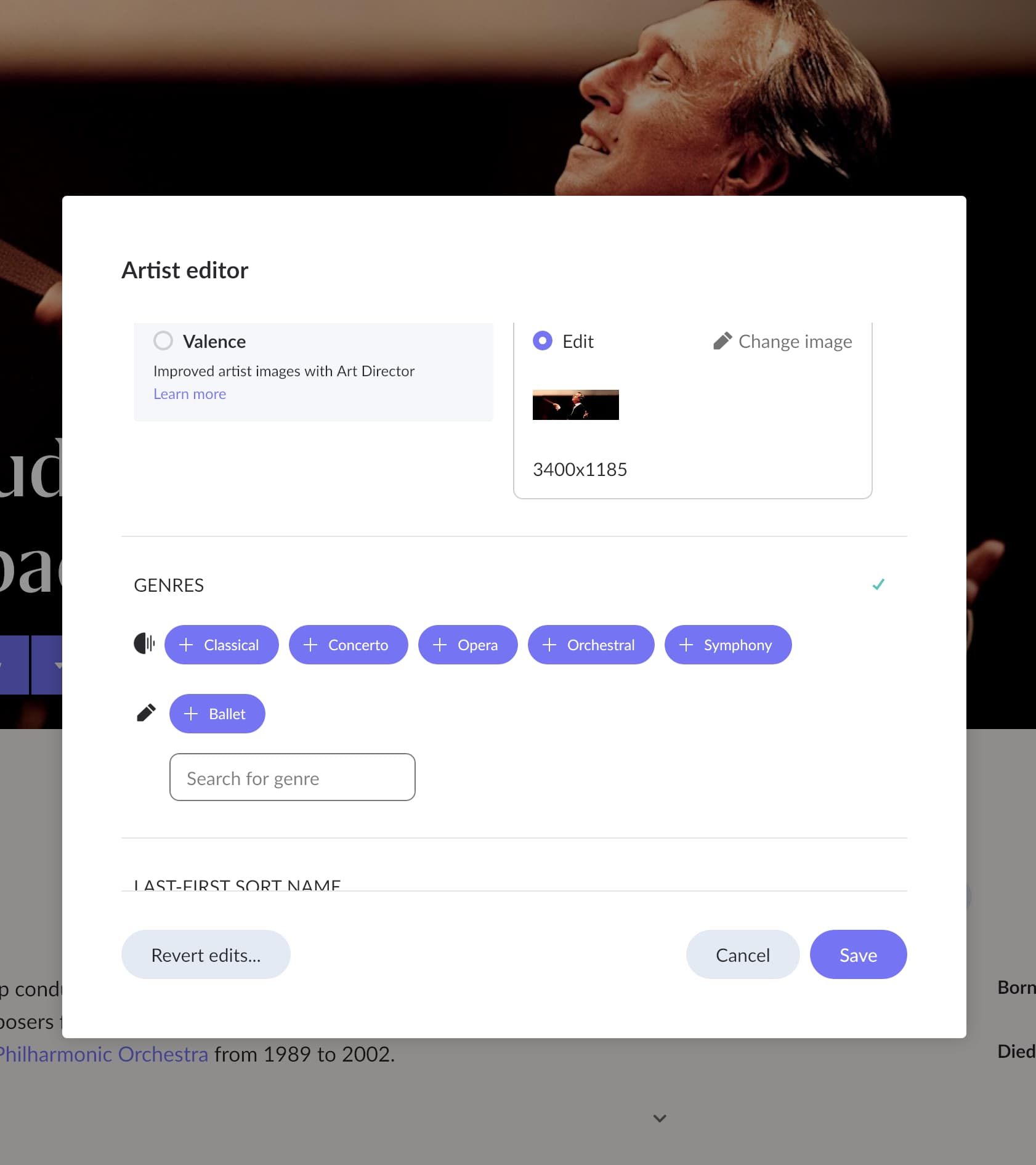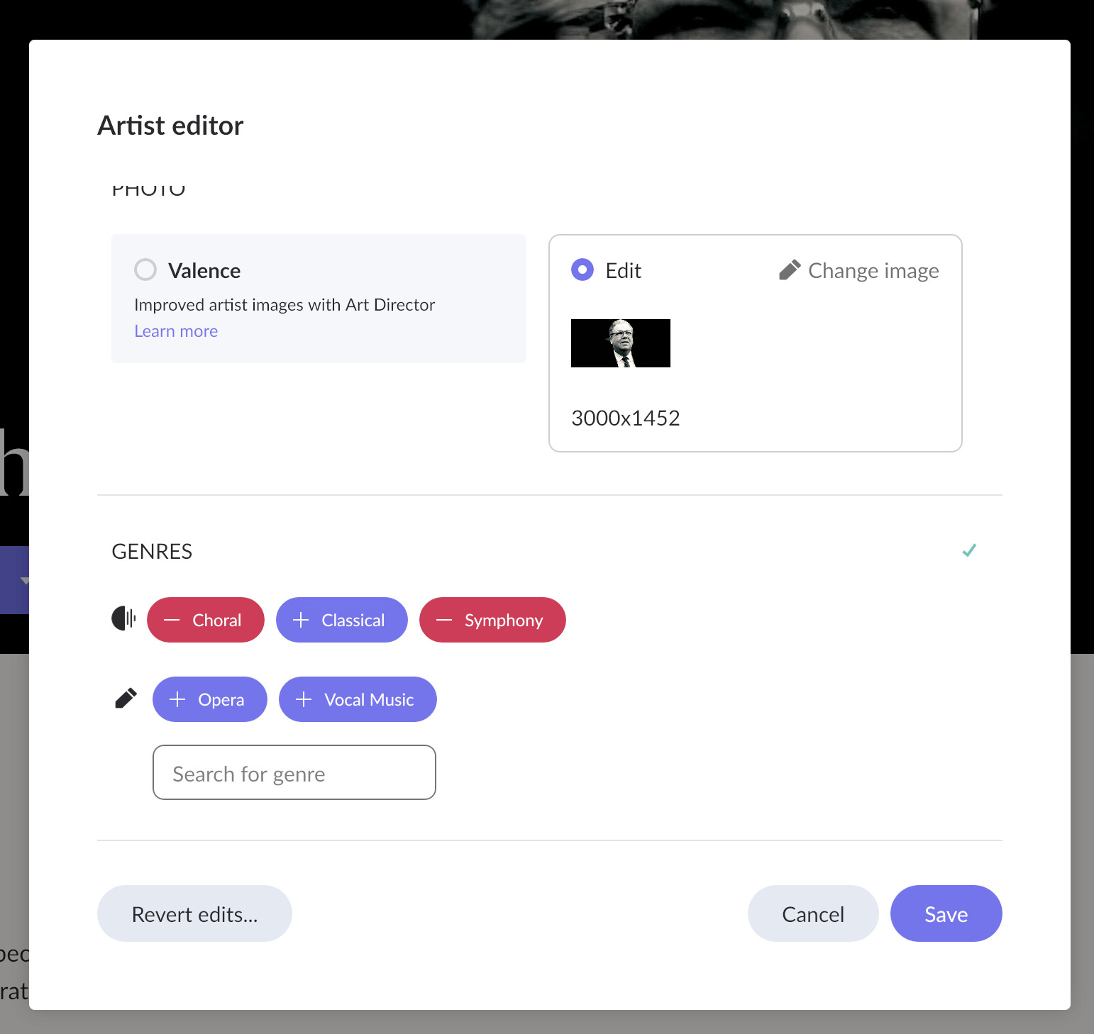 There’s all sorts of fun permutations you can try. Here, I’m trying to have “Classical, Opera, Vocal Music” displayed as the artist’s genres: