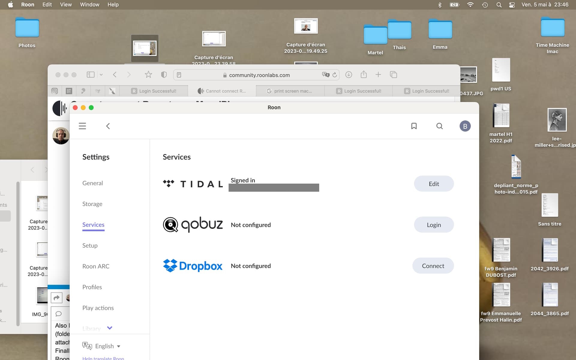 Finally, I connected to Tidal with my login and when I look at Tidal in Roon, it does not let me access any Tidal content (see print screen).