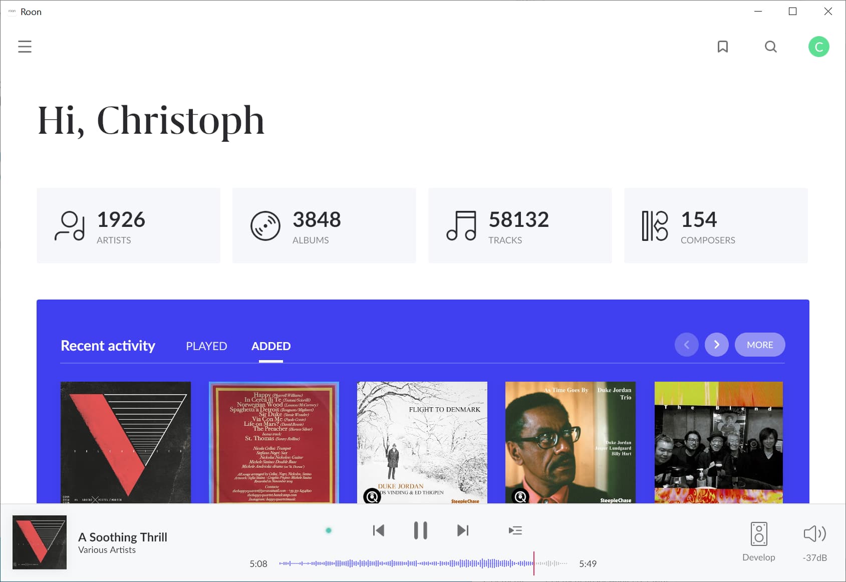 Next I went to my wife’s Win10 PC and opened Roon. It was still v1021 and not used for a long time!