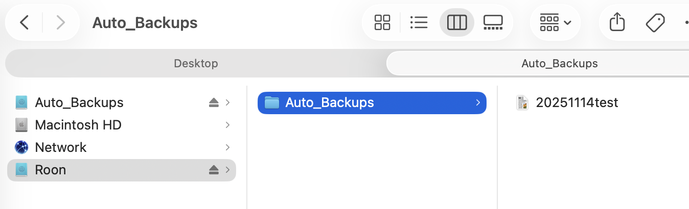 When I type smb://192.168.4.3/Roon/Auto_Backups in to a browser it now opens up a browser window and shows the textedit file after prompting me for the username & password. All good so far.