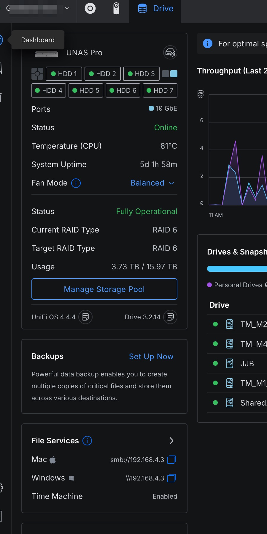 Unifi NAS is on 192.168.4.3