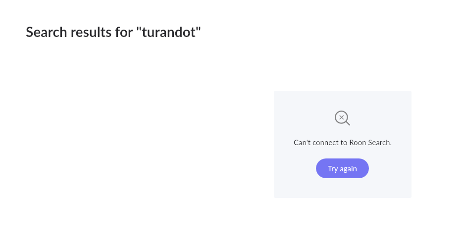 Searching for “Turandot” produces a list of initial results, but trying to view all results produces the “Can’t connect” error.