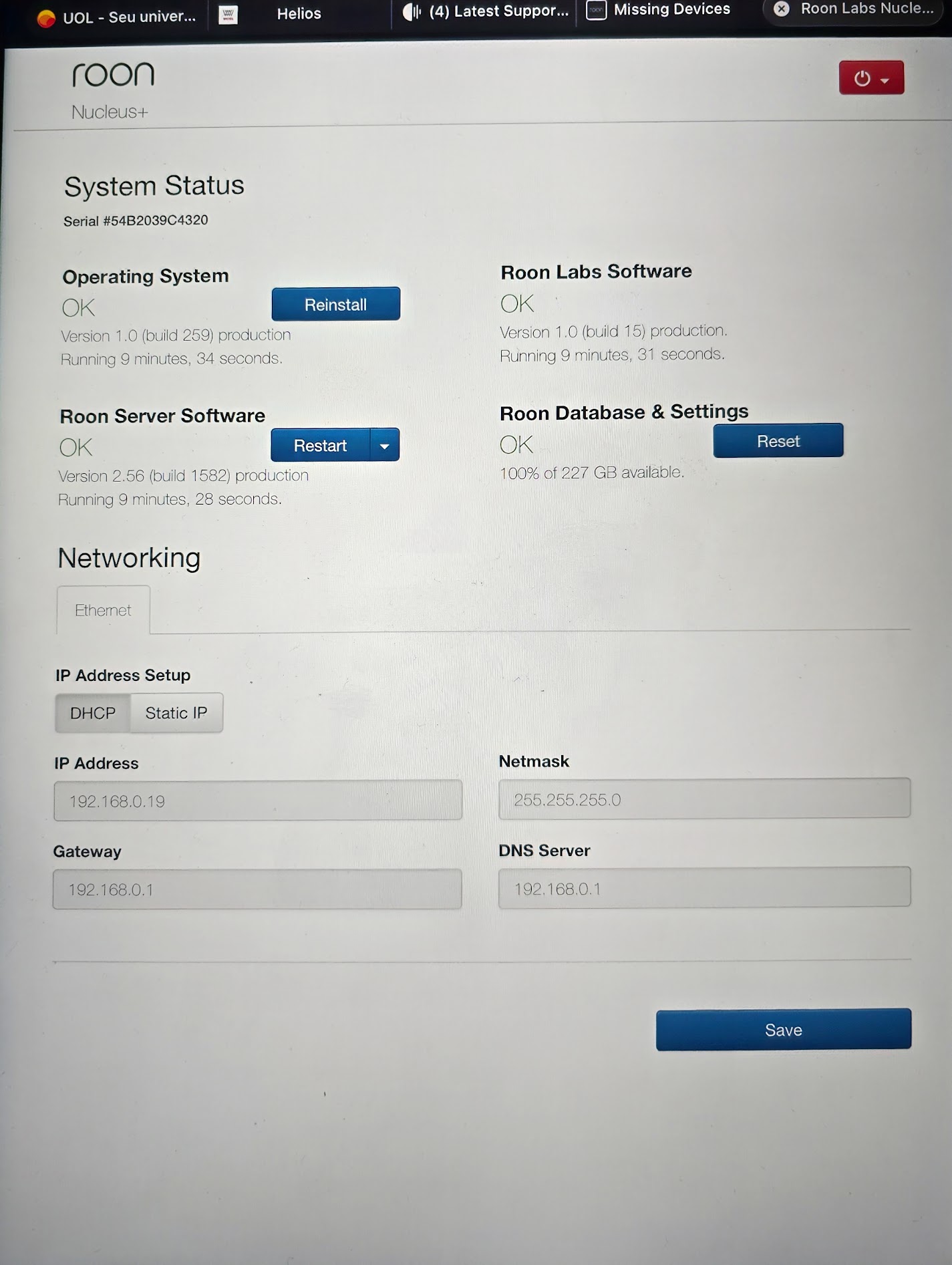 Hi, I did exactly what you asked me to. I’ve connected the Nucleus directly to my network, bypassing the switch. The same, it connected, WebUI ok, but could not access any of my files, neither Tidal nor Qobuz. Is there anything else I can do to make my Nucleus work again?