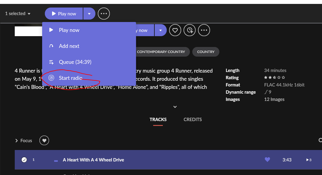Are you referring to when you “select” a track and highlight it then click the three dots and get this menu and then select “start radio”?