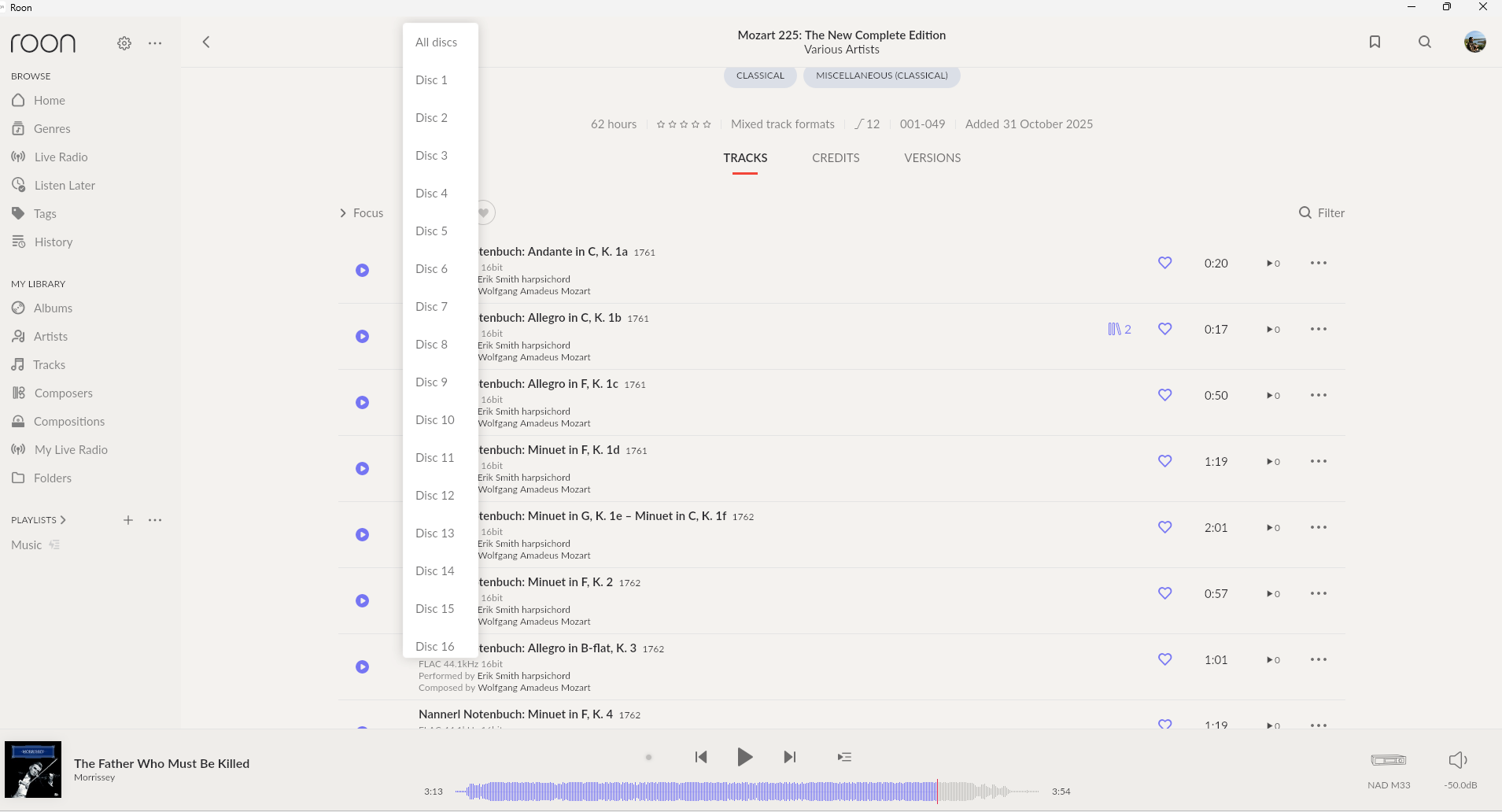I also guess your Mozart is in subfolders in much the same way again with “bald” CD1 etc no extra text.