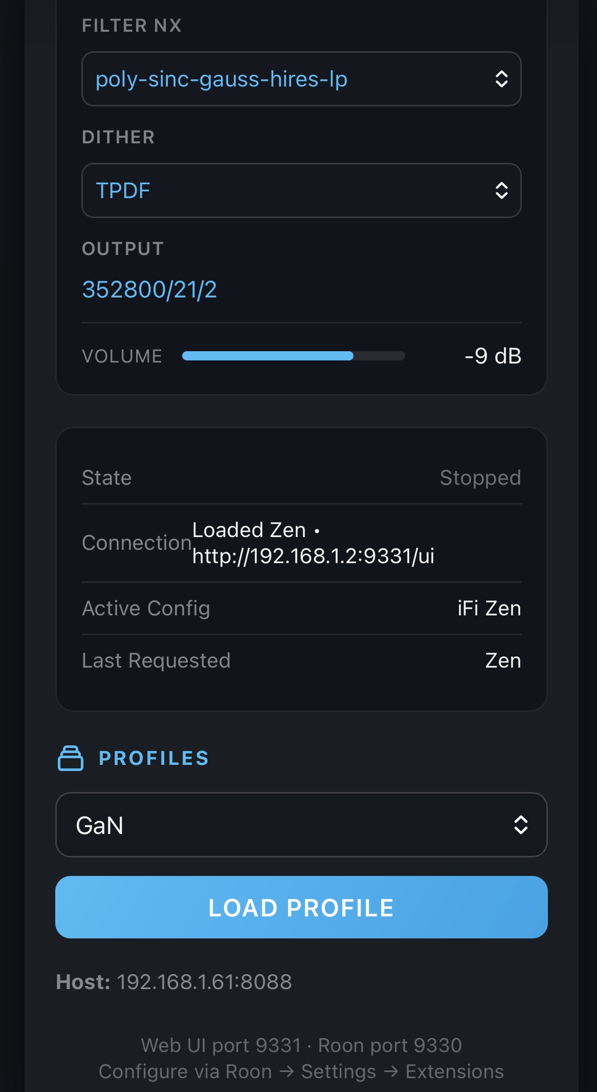 Here’s the current development of the web ui (assumes Roon + HQPlayer embedded configured as an Audio device). Knob will get a subset, probably just profile selection).