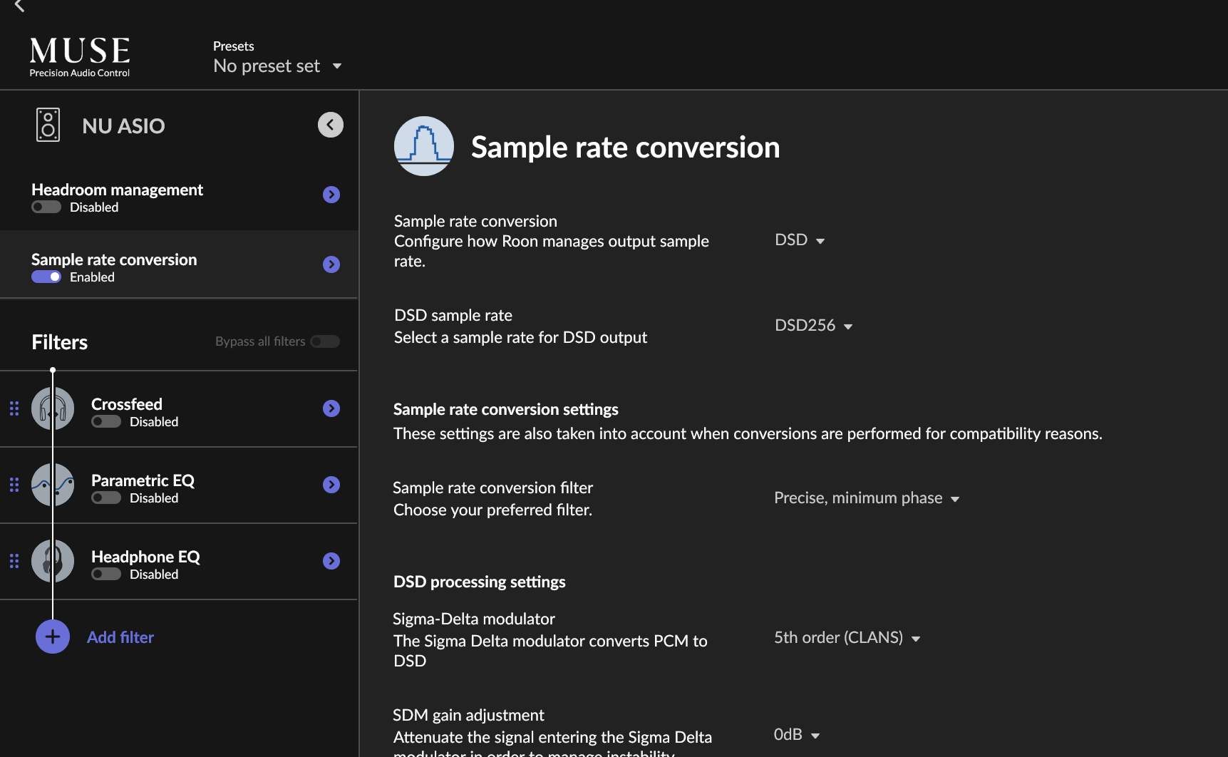 Keep in mind, with DSD make sure there is no DSP going on, no volume leveling, etc as that can stop the conversion to DSD.