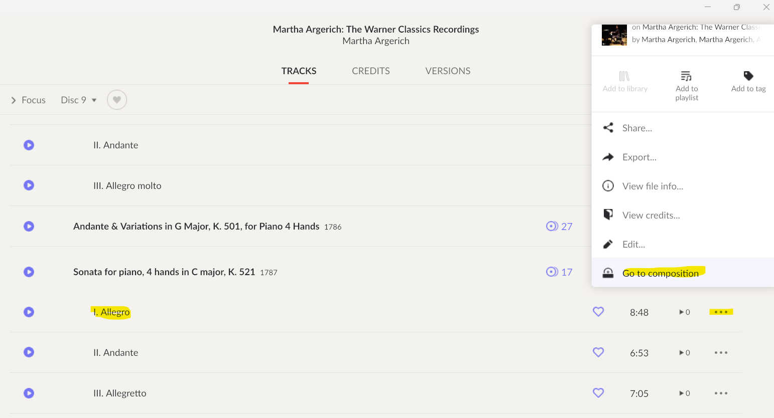 When I click the 3 dots (on any movement) & ‘Go to composition’, the composition is displayed.