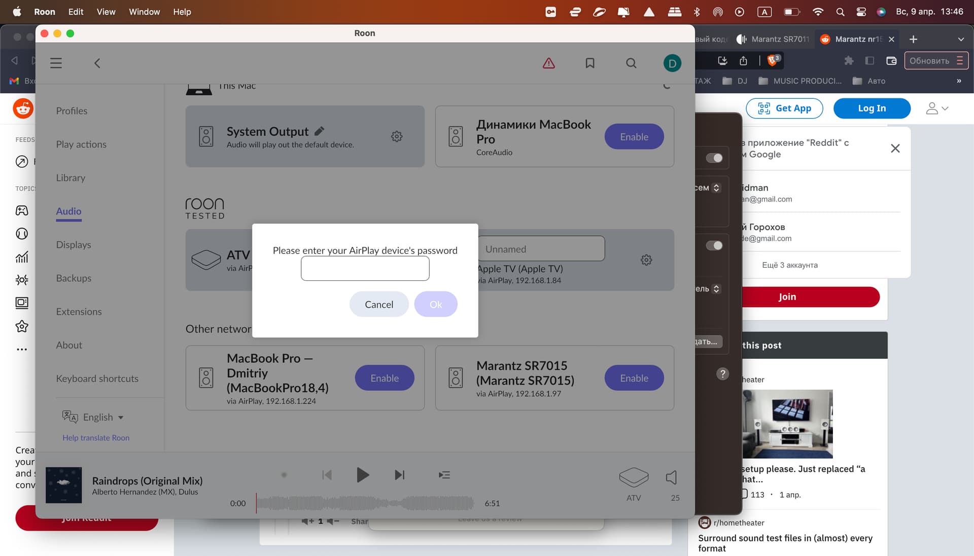 Trying to connect my Macbook to Marantz SR-7015 via AirPlay