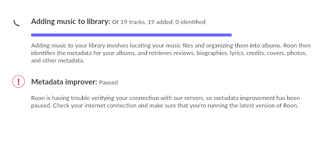 - errors saying Roon’s servers cannot find my library or update metadata